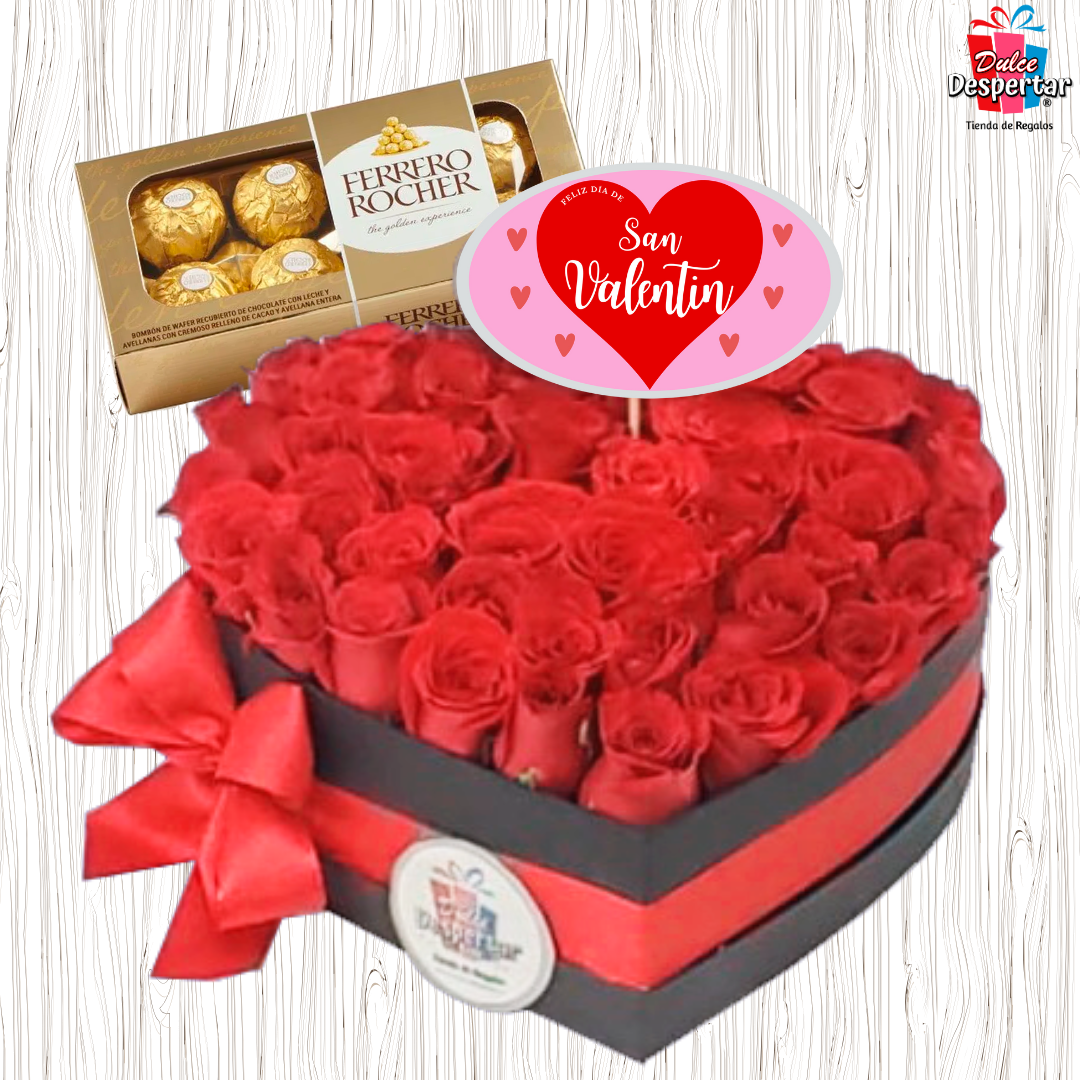 CORAZÓN CON ROSAS Y CHOCOLATES